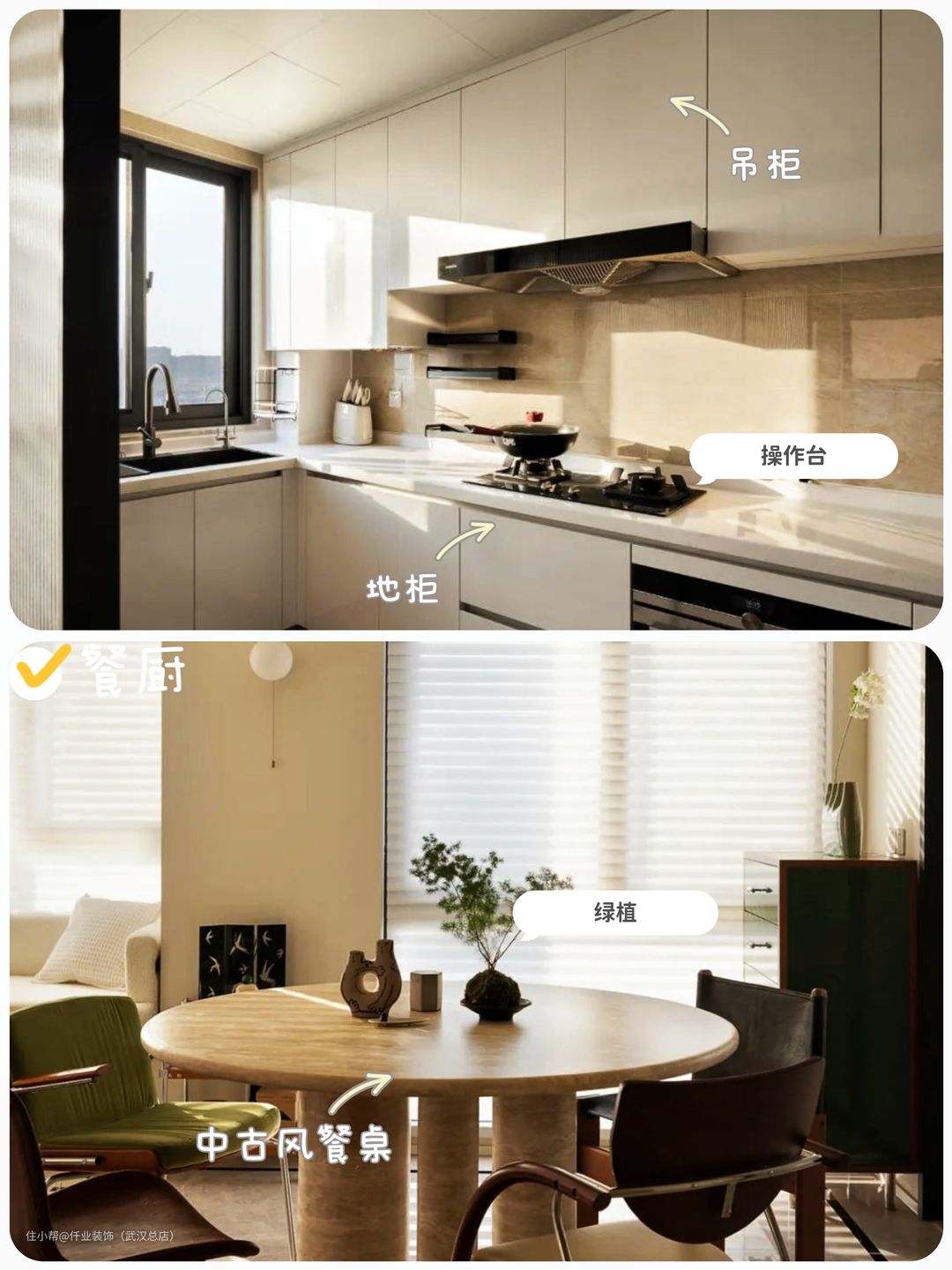 💗💗厨房没有大的改动,但墙壁上增设的置物架可以有效保持工作台面的干净整洁。