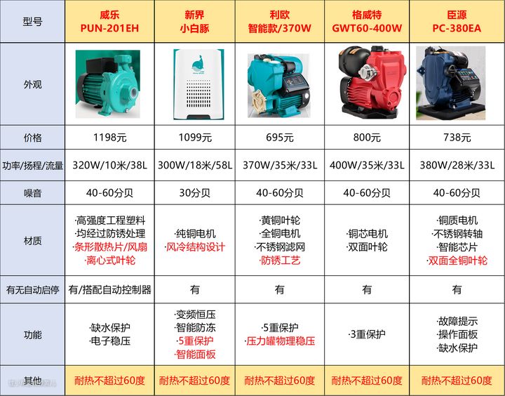 还有就是有些商家会瞎标这个受热程度,本来只能接受二三十度的温度,结果让顾客以为能使用热水,所以有时候在高温环境下,增压泵很容易出故障,电机耗损很大。这个平时注意就行,还是问清楚客服。