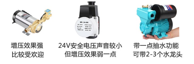 如果家里面积小,想要局部进行增压,像单独的水龙头,花洒,热水器等建议水压式