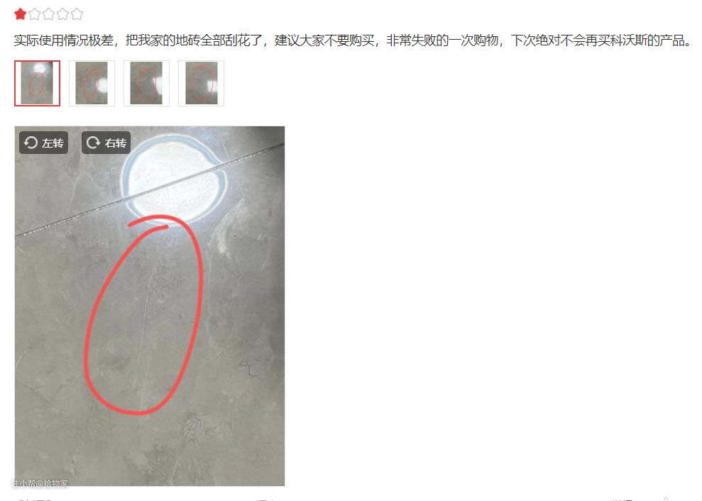 ⑤、刮花瓷砖。你可能觉得匪夷所思,但是当你仔细查看扫地机器人商品评论区的时候,你就会发现,不只是一个人这样反馈。