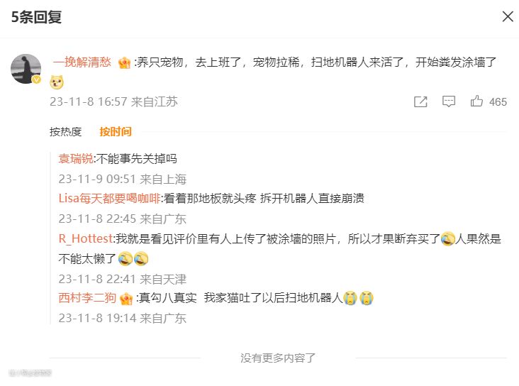 网友@Julia Fang的家,宠物搭配扫地机器人,遇到狗屎竟然不避障,扫不干净就算了,反而弄得到处都是。