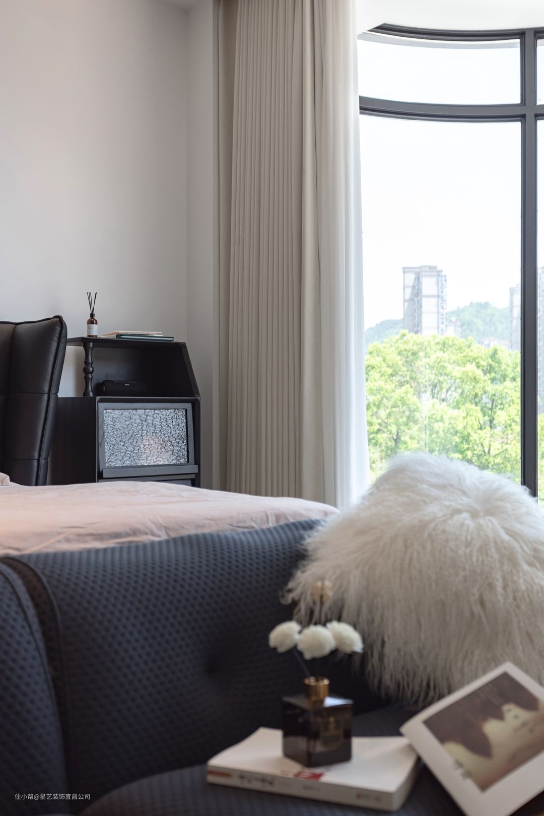 🧡超大落地窗引光入内,让空间通透而温暖,卧室内部采用无主灯吊顶+氛围灯,增加艺术气息~