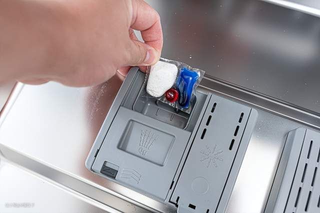 米家洗碗机P1支持智能投放洗碗液,加一次洗碗液,可以用两周左右,会根据放入碗碟的脏污情况,自动调整用量,搭配官方推荐的亮碟洗碗产品 清洁效率相当高。同时也保留了传统洗碗机的耗材模块,在洗碗液添加口旁分别是洗碗块、粉和亮碟剂的添加口。