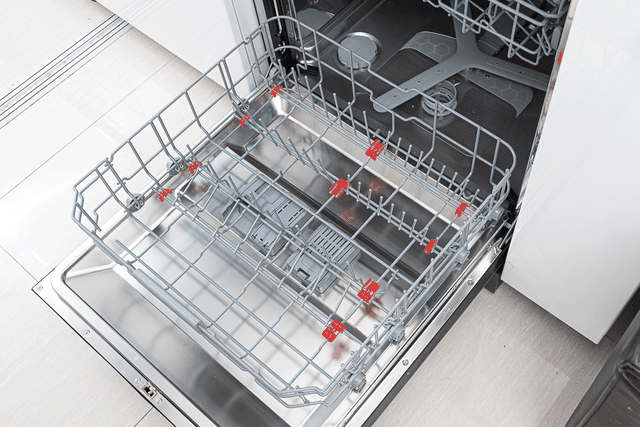 打开门看洗碗机的内部,这款采用了三层碗篮的设计,这样筷子、勺子都单独的存放地方,清洁的更干净,也便于摆放。