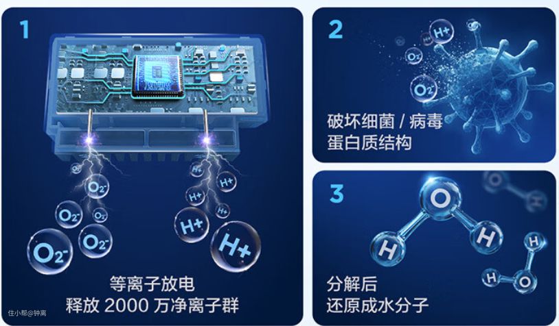 但这款空调不同的是它非常关注使用空调人群的健康空调,在使用时往往需要紧闭门窗,这就给了尘螨和细菌滋生的空间,于是这款空调搭载了高达2000万/㎤的净离子群,正负离子结合就会直接破坏细菌,的细胞膜和病毒的蛋白质同时可以吸附灰尘,从而达到开着空调也能无菌的环境。