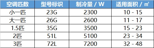空调匹数就意味着它的出风量等级,直接相关的就是根据面积选空调。