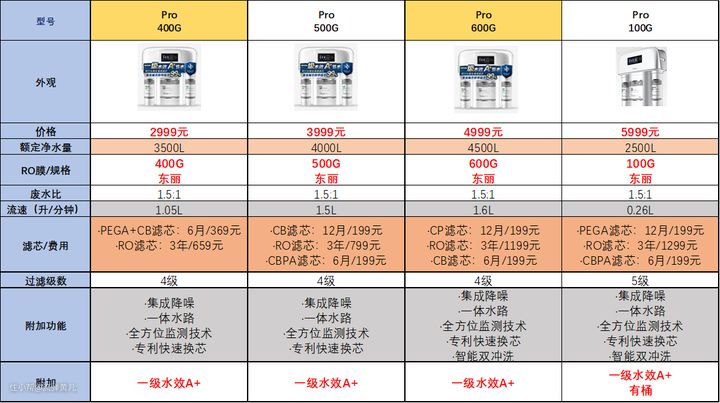 小方盒系列:世韩的RO膜,3年长效,中高端系列 Erie系列:东丽的RO膜,性价比高,入门系列 Pro系列:东丽的膜,中端系列 双鱼座系列:主打双出水,也是东丽的膜,中端系列 新推出了引擎系列,十分推荐