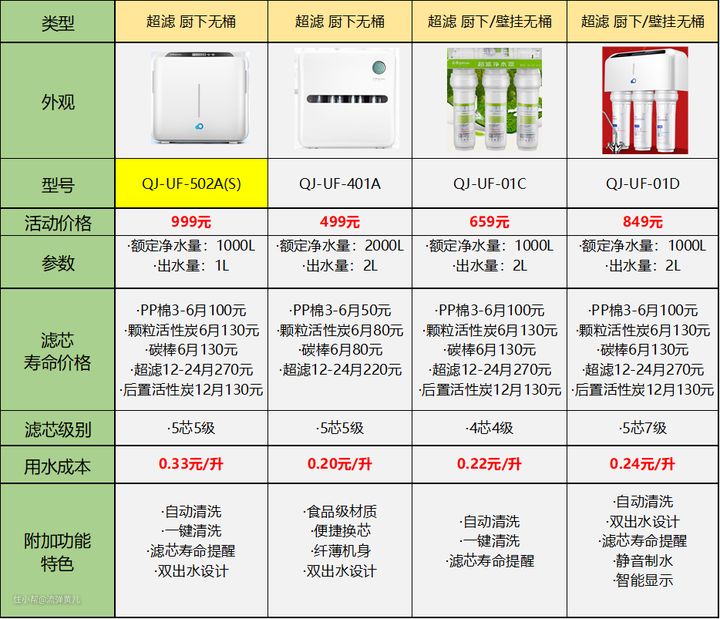 还有这款QJ-UF-401A其实和他差不多,就是4芯4级,整体的过滤效果差了点,但是材料是食品级的,还有静音设计,母婴专属推荐。