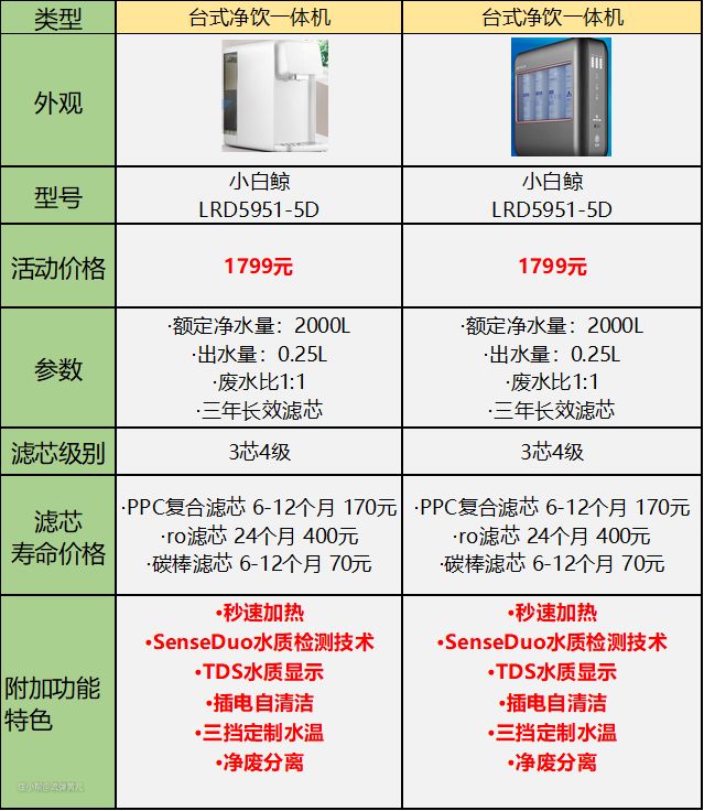 对还有净饮一体机,这里就列举出来大家参考一下就行。
