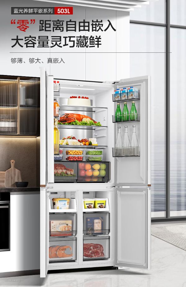 - 这款超薄零嵌入冰箱,全空间科技保鲜,冷藏,阻氧干湿分储;冷冻,智能恒温保鲜科技,牛肉30天原汁原味;除菌,智慧除菌;一级健康保鲜标准,守护食材源鲜营养和口感;