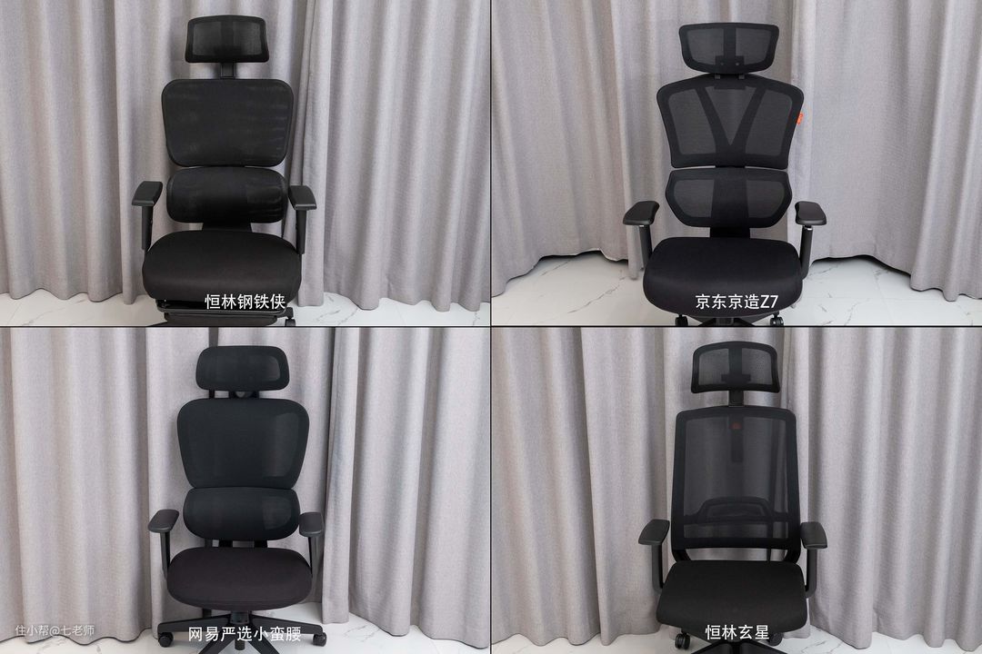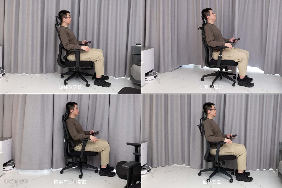 四款人体工学椅中,恒林钢铁侠、网易严选小蛮腰、恒林玄星的坐垫高度基本都让大多数身高的使用者获得舒适的坐感,而京东京造Z7 则比较适合大高个或者腿比较长的使用者。