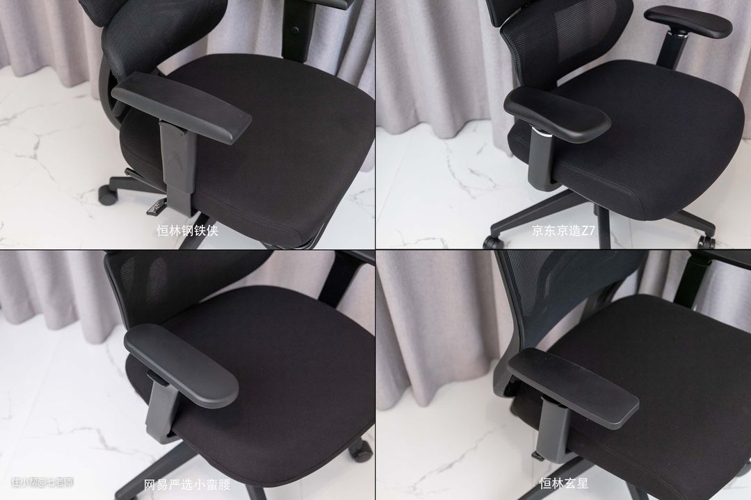 坐垫厚度和弹性:京东京造Z7 =恒林钢铁侠>恒林玄星=网易严选小蛮腰