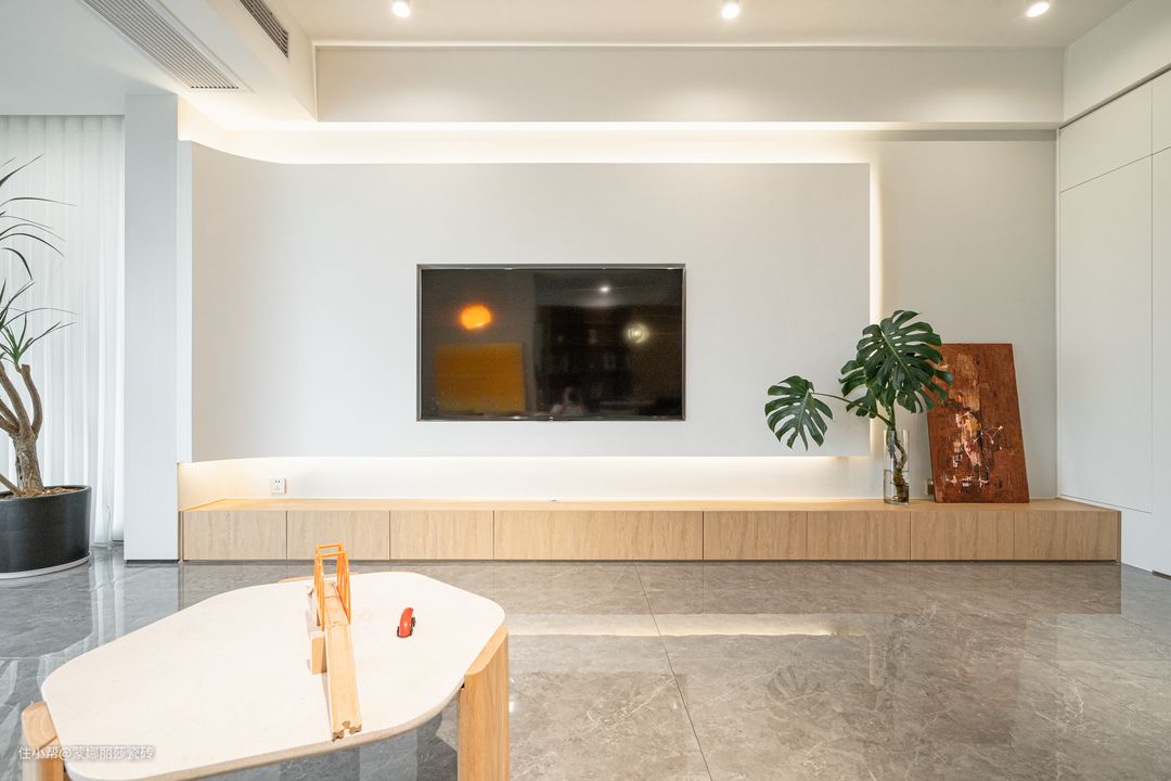 屋主小海洋地面通铺的是西雅灰仿大理石瓷砖,质地细腻,纹路自然,给人和谐自然舒适之感,再搭配原木风的家居,极简的留白设计,让整个家拥有一种简单质朴却精致的美。
