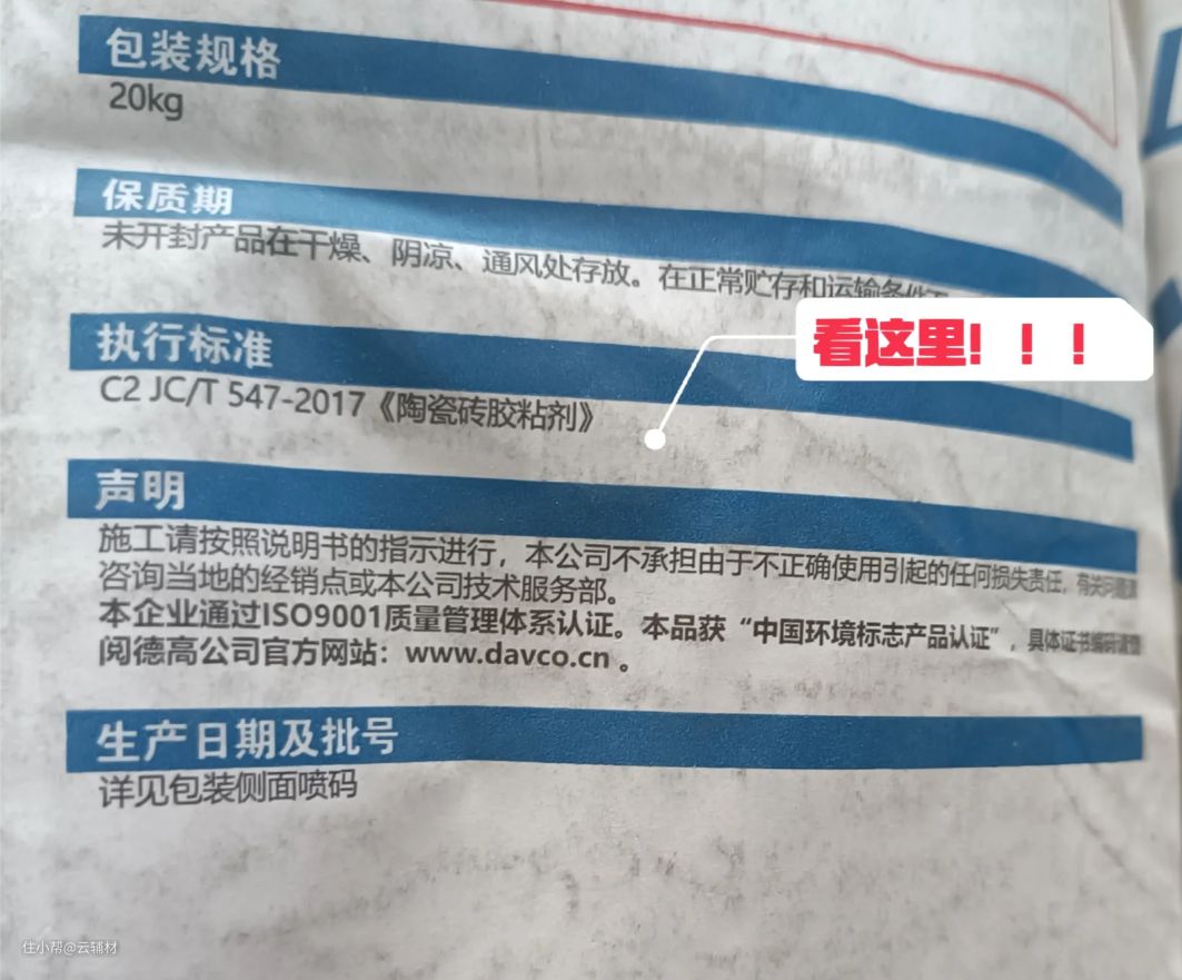 瓷砖胶性能分类比较多,不要只看包装上写着大砖专用,得看执行标准和使用要求。例如:雨虹C500超柔大板瓷砖胶,执行标准:JC/T547-2017C2ES1