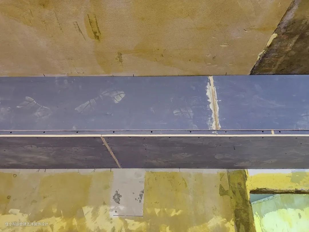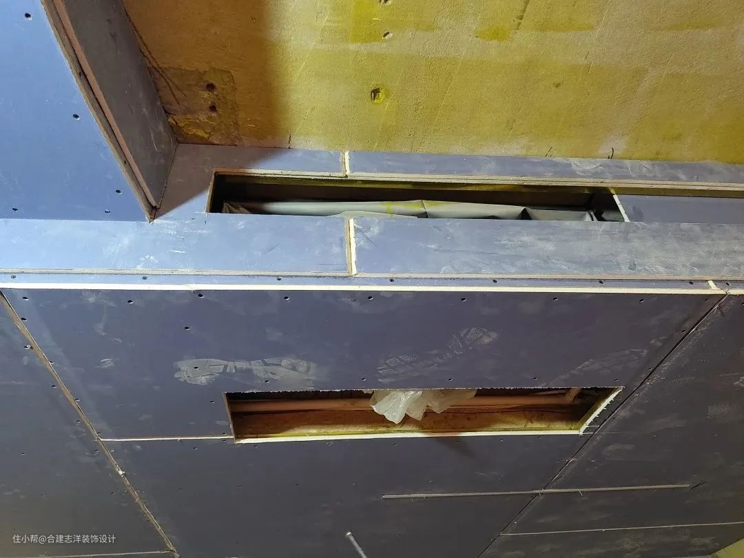 合建装饰要求在轻钢龙骨石膏板吊顶工工艺中,石膏板拼接缝开八字缝,填充嵌缝石膏,贴牛皮纸,防止后期开裂。在墙面转角处,合建装饰同样要求做石膏板L型转角工艺,也是为了避免后期墙面开裂。