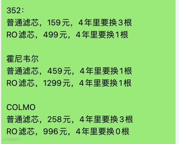 这里头,霍尼韦尔和352是比较类似的方案,一根复合滤芯+一根RO滤芯