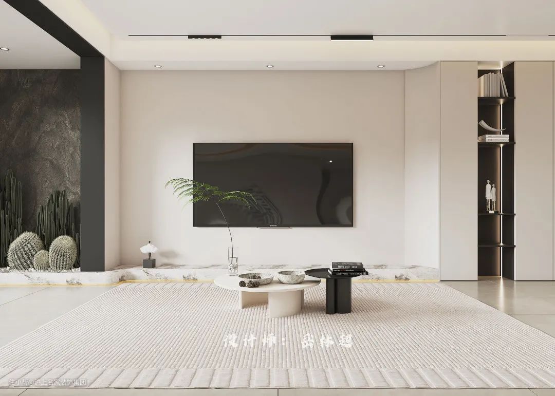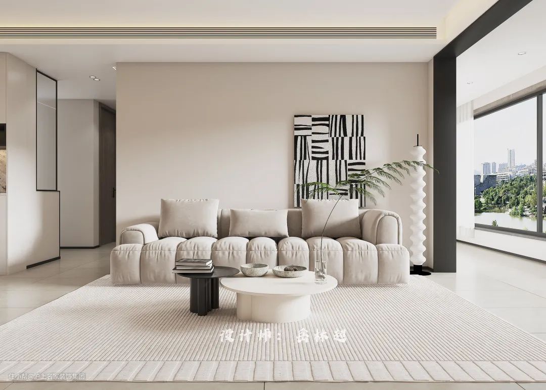 客厅选择了淡雅的米白色作为主色调,营造安逸平和的空间氛围。