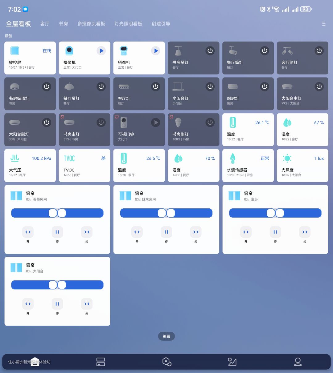 我目前已经接入的Aqara设备,包括智能开关、智能吸顶灯、光照传感器、温湿度传感器、TVOC空气健康伴侣、水浸传感器、烟雾报警器、天然气报警器、智能门铃、智能摄像头、窗帘电机等等,正式入住了之后我还会再换Aqara的智能门锁和人体传感器以实现更多的自动化操作。