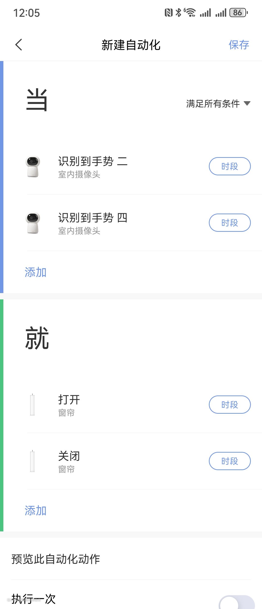 玩法七:放在饭厅的Aqara智能摄像机G3支持多种手势识别,可以在App里设置自动化,比如对着摄像头伸出两根手指,指定房间的窗帘就打开,伸出四根手指就关闭,诸如此类。