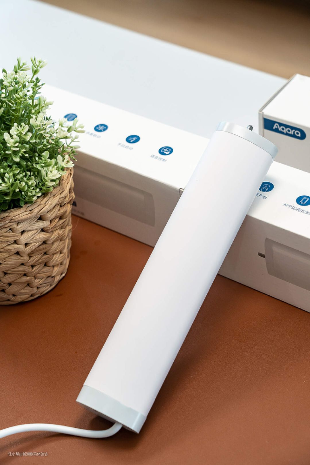 Aqara智能窗帘电机C2(为了便于叙述,下文统一简称为Aqara C2)的外观设计还不错,采用了纯白配色,尺寸为44X61X296mm。