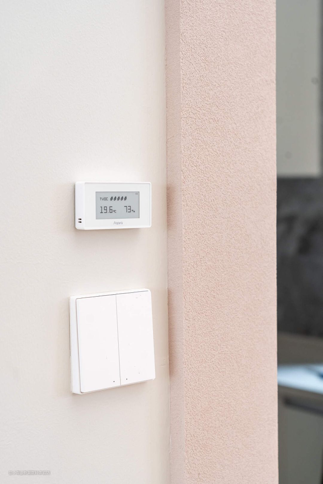 考虑到新房刚装修完,我还在厨房门口装了一个TVOC空气健康伴侣,随时检测家中空气质量。