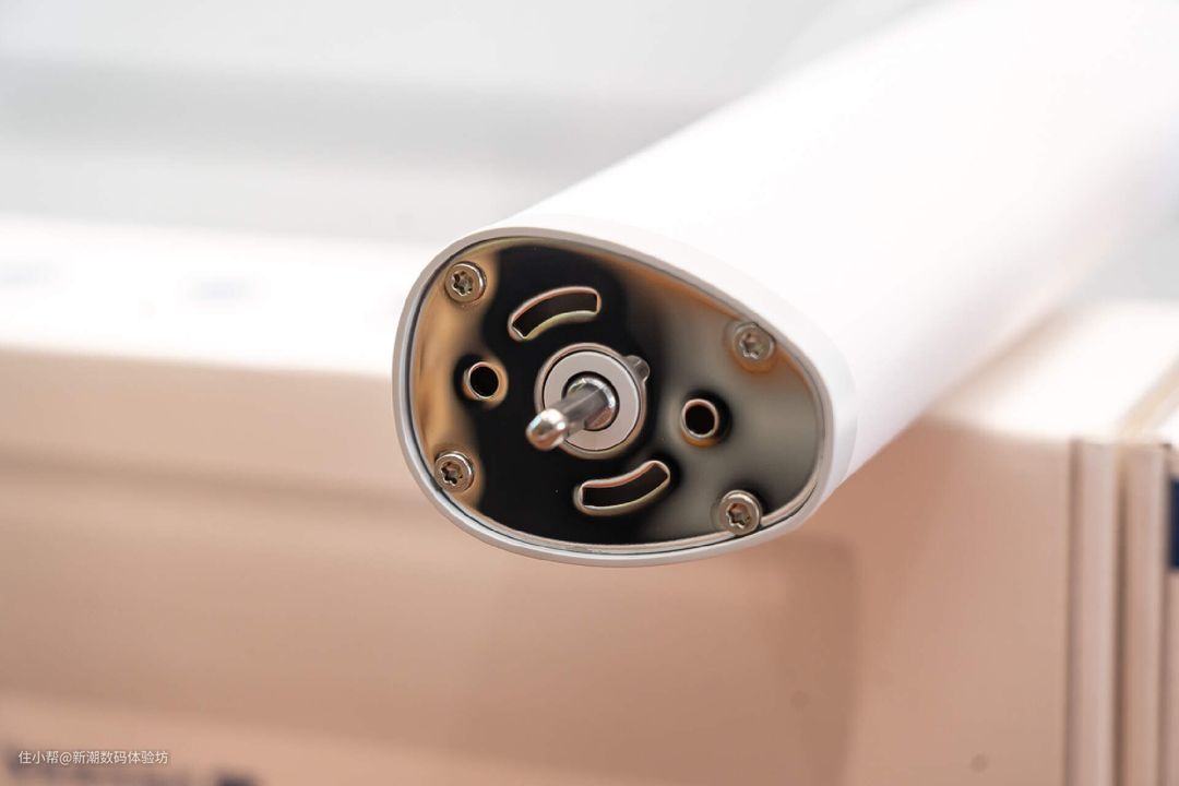 旋转式的卡扣,卡在导轨一侧,契合度很高,不用担心它会掉下来。电机的外观其实大家看看图片了解一下就行了,因为正式安装完成之后,它将会被窗帘布完全遮住,你平时是看不到的。