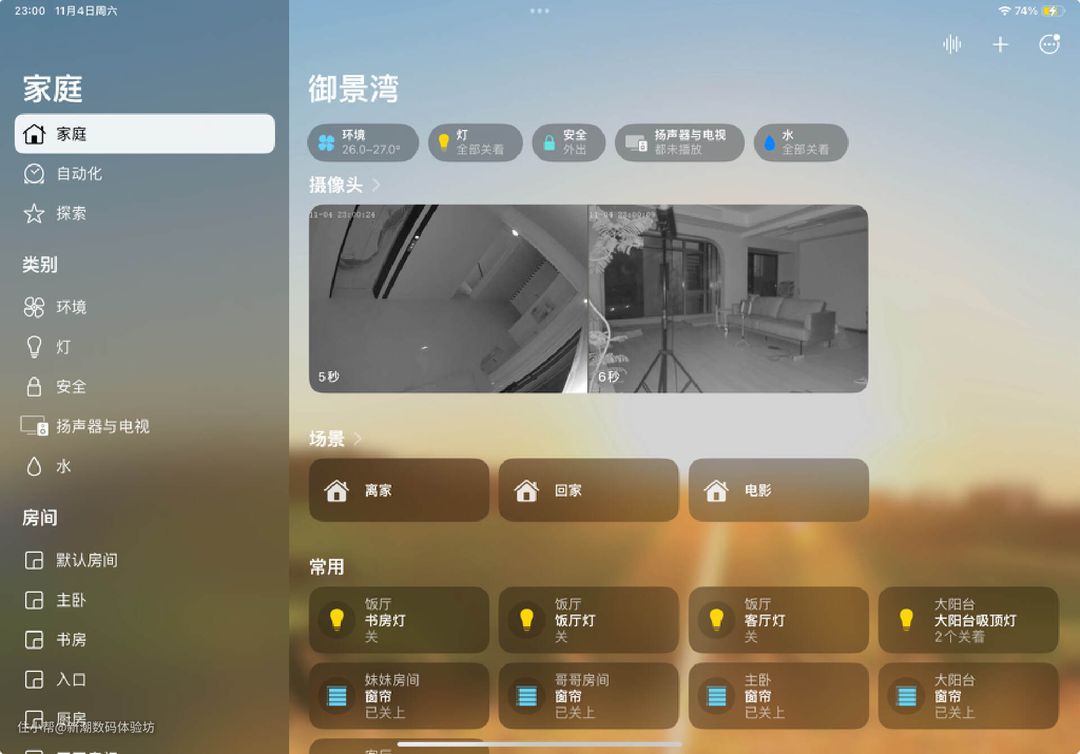 玩法一:我在进门的位置装了一个Aqara无线开关,回家后单击就会启动回家模式,客厅吸顶灯和筒灯自动打开,大阳台窗帘自动拉开。离家的时候双击就会启动离家模式,全屋的灯自动熄灭,窗帘自动合上。