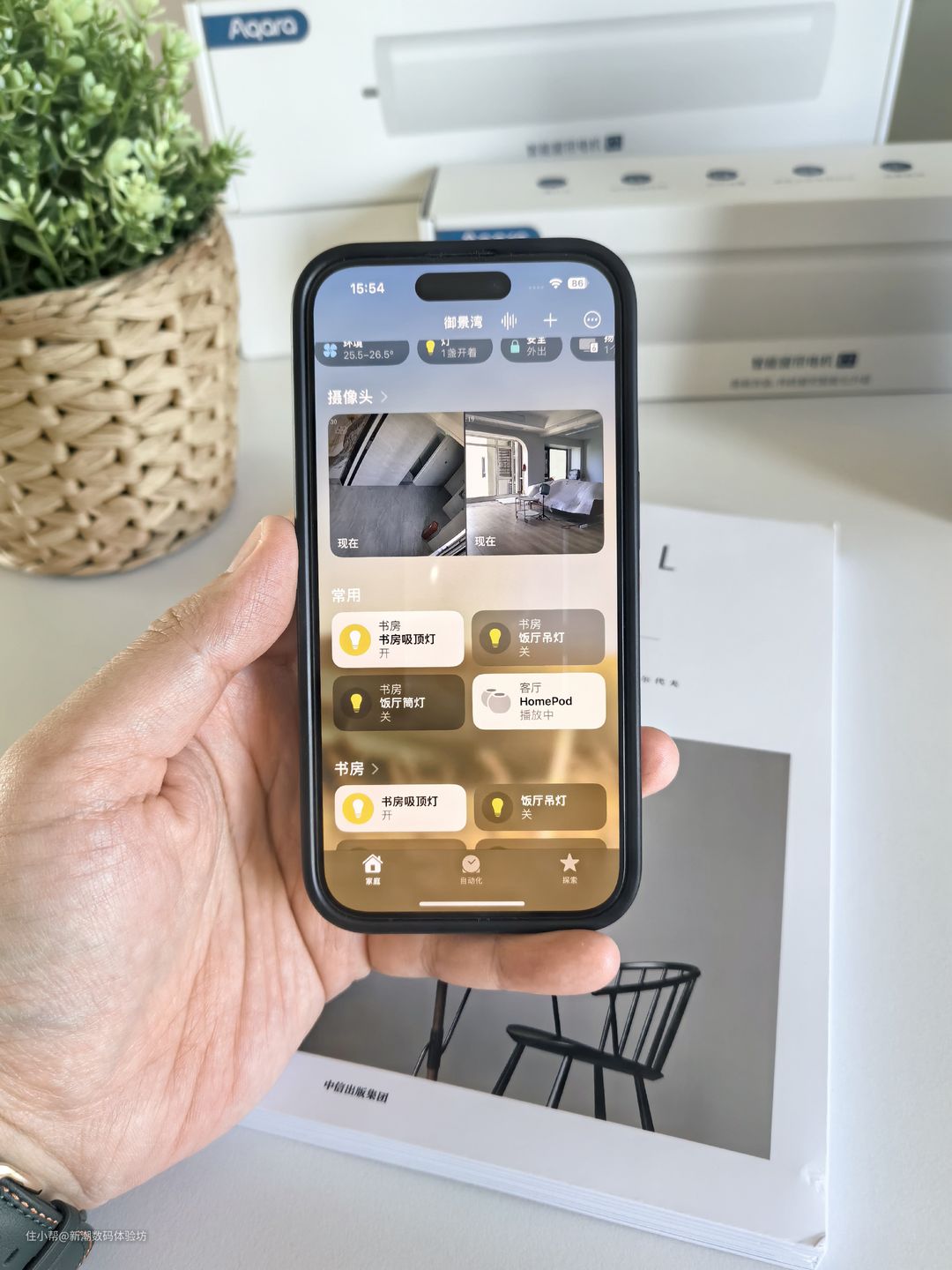 这些设备都通过Aqara Home App同步到了苹果家庭中,而且像冰箱、扫地机、风扇这些家电可以考虑选择米家、云鲸、美的这些牌子,后续再通过homeassistant盒子统统接入homekit,通过HomePod来进行控制,简直完美。