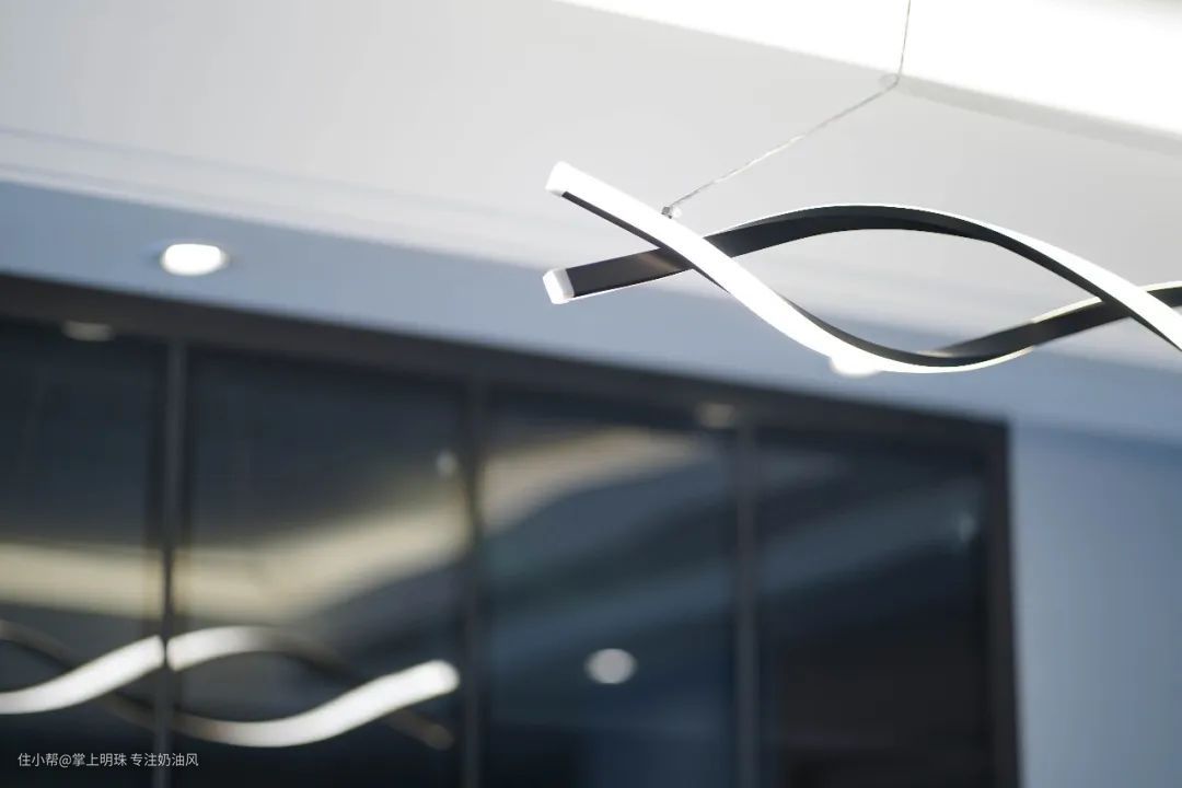 餐厅整体给人一种舒适淡雅的感觉,独具设计感的餐厅吊灯,暗藏主人的精致小心思。