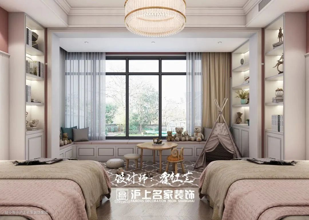 儿童房简洁的空间基础,布置上卡通色的床单,一旁的衣柜在最里侧加入空格架方便书籍与小物件的摆放,提供了方便实用的儿童房功能。