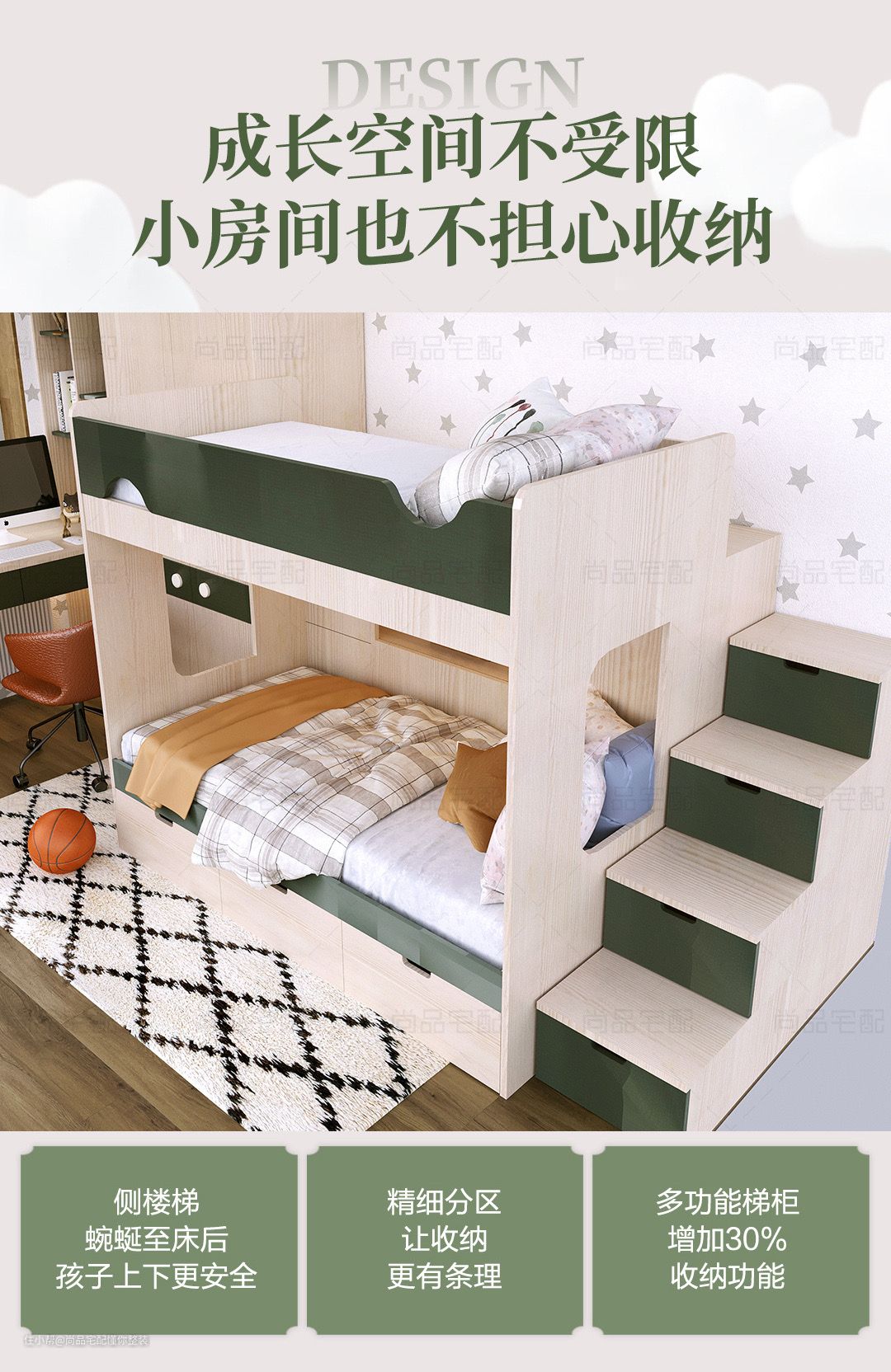 其实并不需要为玩具专门制作一个收纳柜,可建议客户改造的时候与衣柜合并使用,但最好先找到深度够深、放得下大小玩具的玩具箱或网蓝,再规划衣柜的尺寸,以便能容纳玩具箱的体积。而收纳玩具的位置以便能容纳玩具箱的体积。而收纳玩具的位置以“没有柜门的下柜”为宜,以方便盒子或篮子推入置放。