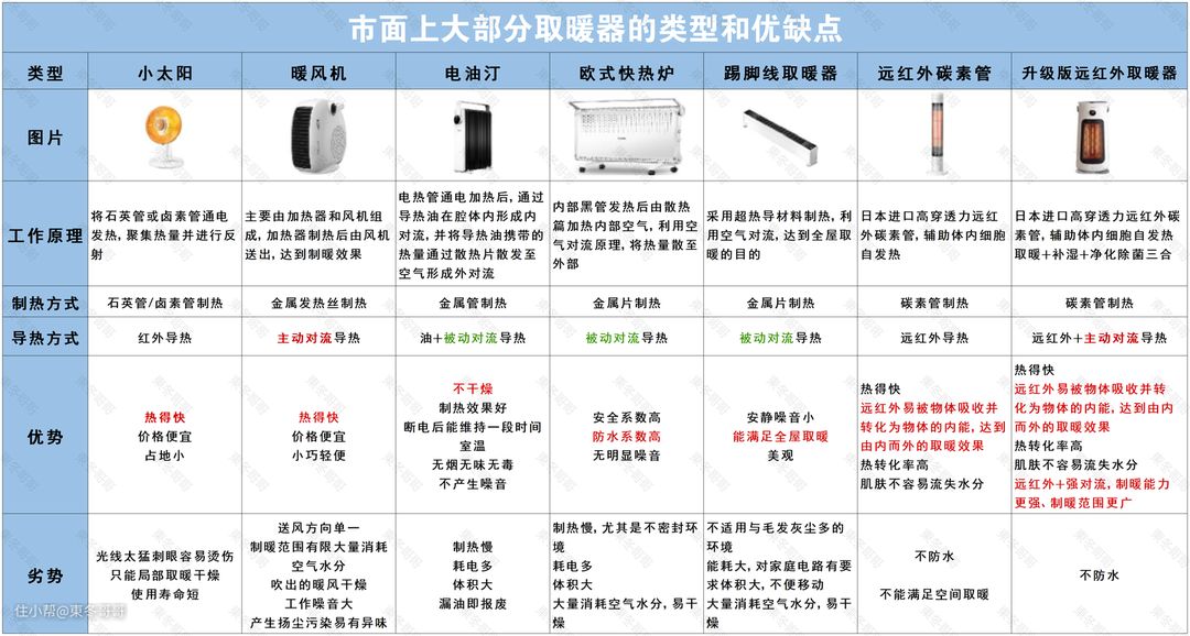 市面上大部分取暖器的类型和优缺点