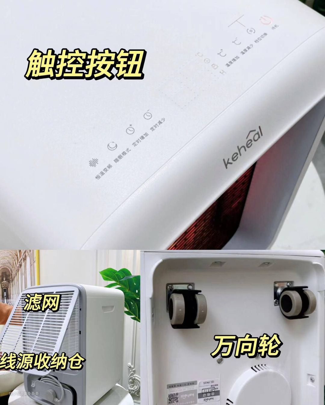 ①灵敏触屏按键;②五个风速档位搭配无极旋钮方便调节,满足不同暖度需求;③升级可视化遥控,夜间操控不用起身;④0-12H定时,可自动关机;⑤智能童锁;⑥实时检测室内温度,双重过热保护。