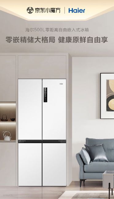 海尔(Haier)500L零距离自由嵌入十字对开双开四门电冰箱家用白色无霜一级能效超薄零嵌入式BCD-500WGHTD49W9U1