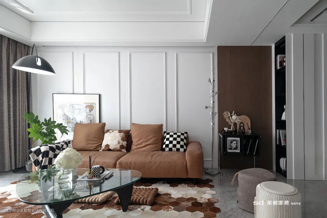 通过吊顶的设计,形成空间的层次变化,达到视觉上的美感和设计感。为更贴合当下对简约概念的推崇,可以将吊顶简化。如果想要来点精致感,可以在边角部分走一圈带有花纹的石膏线装饰。
