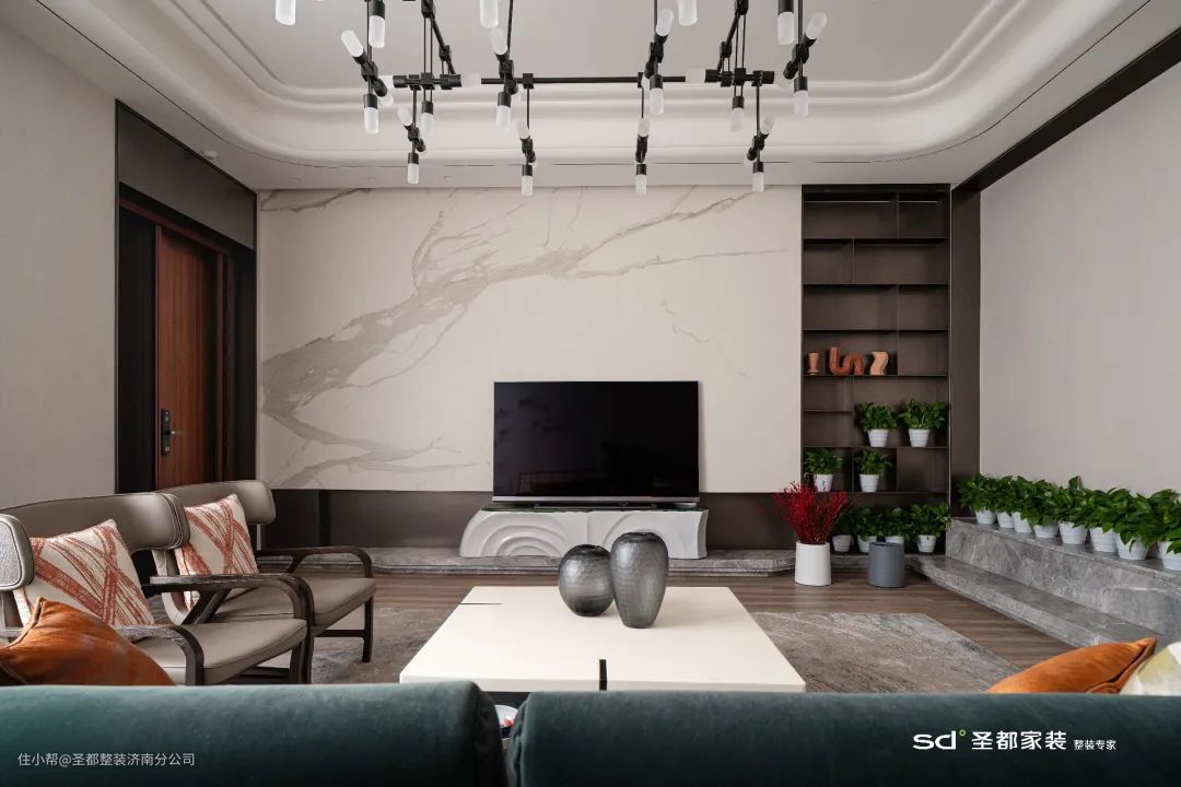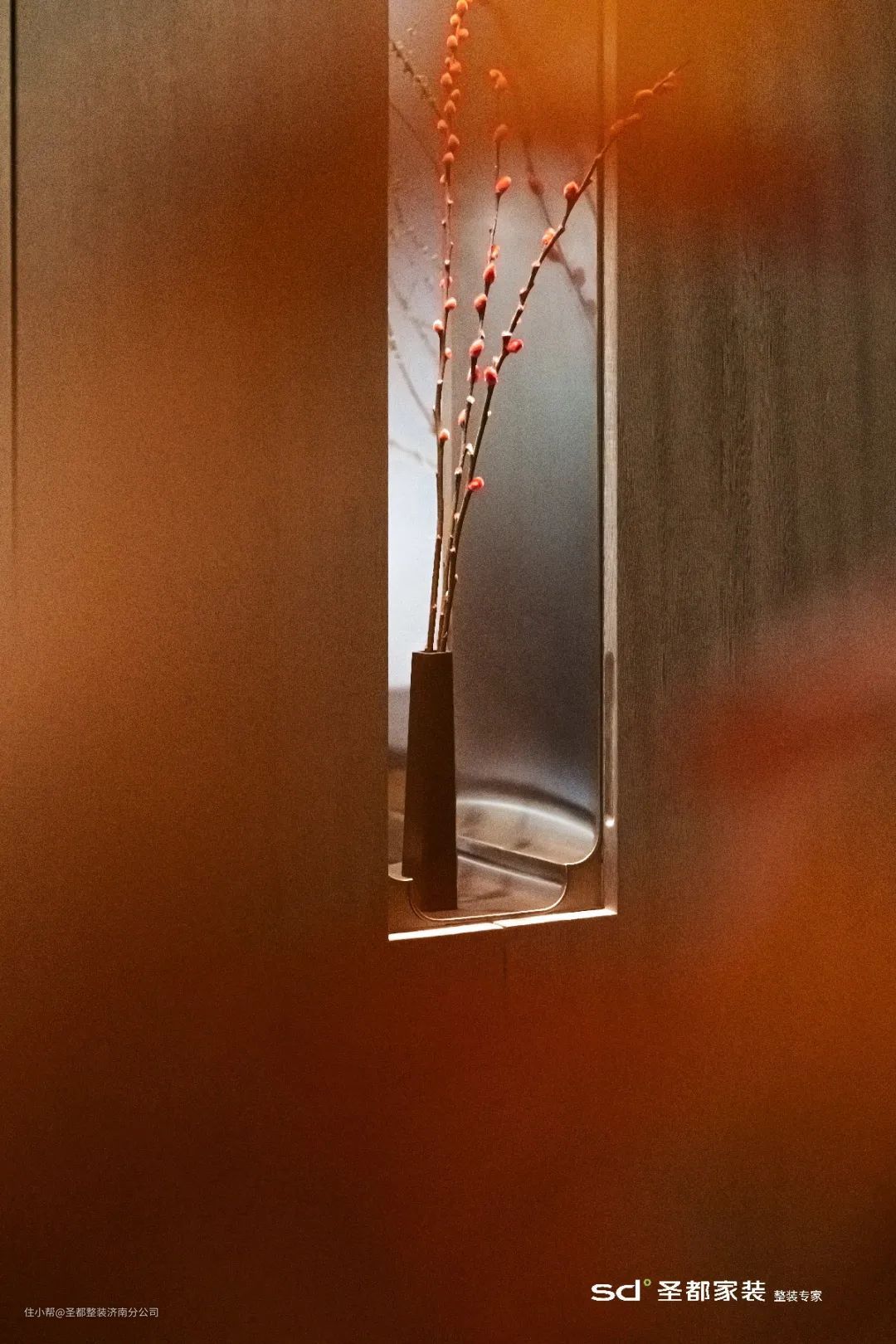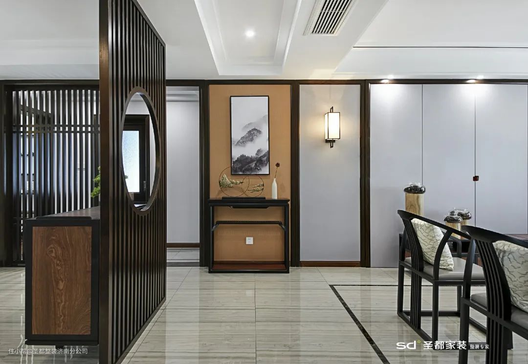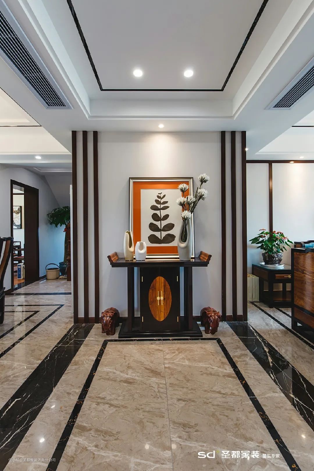新中式的空间布局,遵循中国的“天圆地方”的思想,讲究对称设计。这种独特的平衡美,让空间比例达到完美形式,以此呈现出庄重、大气的空间氛围感。设计参考↓↓↓
