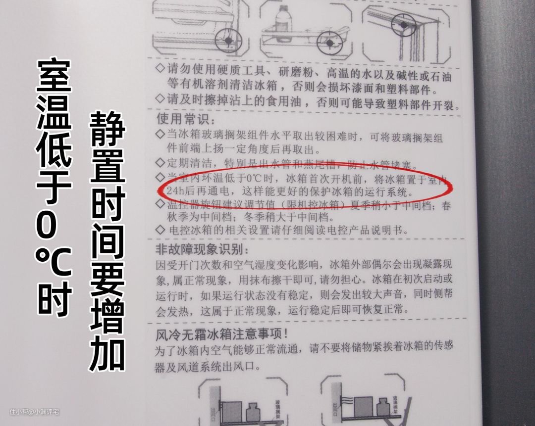 这个时候,你是不是迫不及待地想要给冰箱插上电?别急,看看说明书再说:每一台冰箱的说明书或者冰箱面板上都会有警告,让你静置12小时再通电。