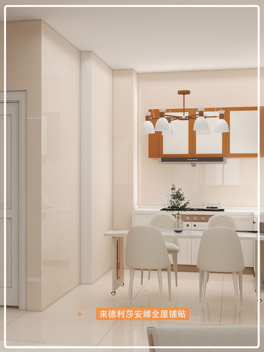 想要将奶油风柔和的一面充分展示出来,地面我们可以选择木纹或者哑光素色的产品,空间整体显得柔和大方!