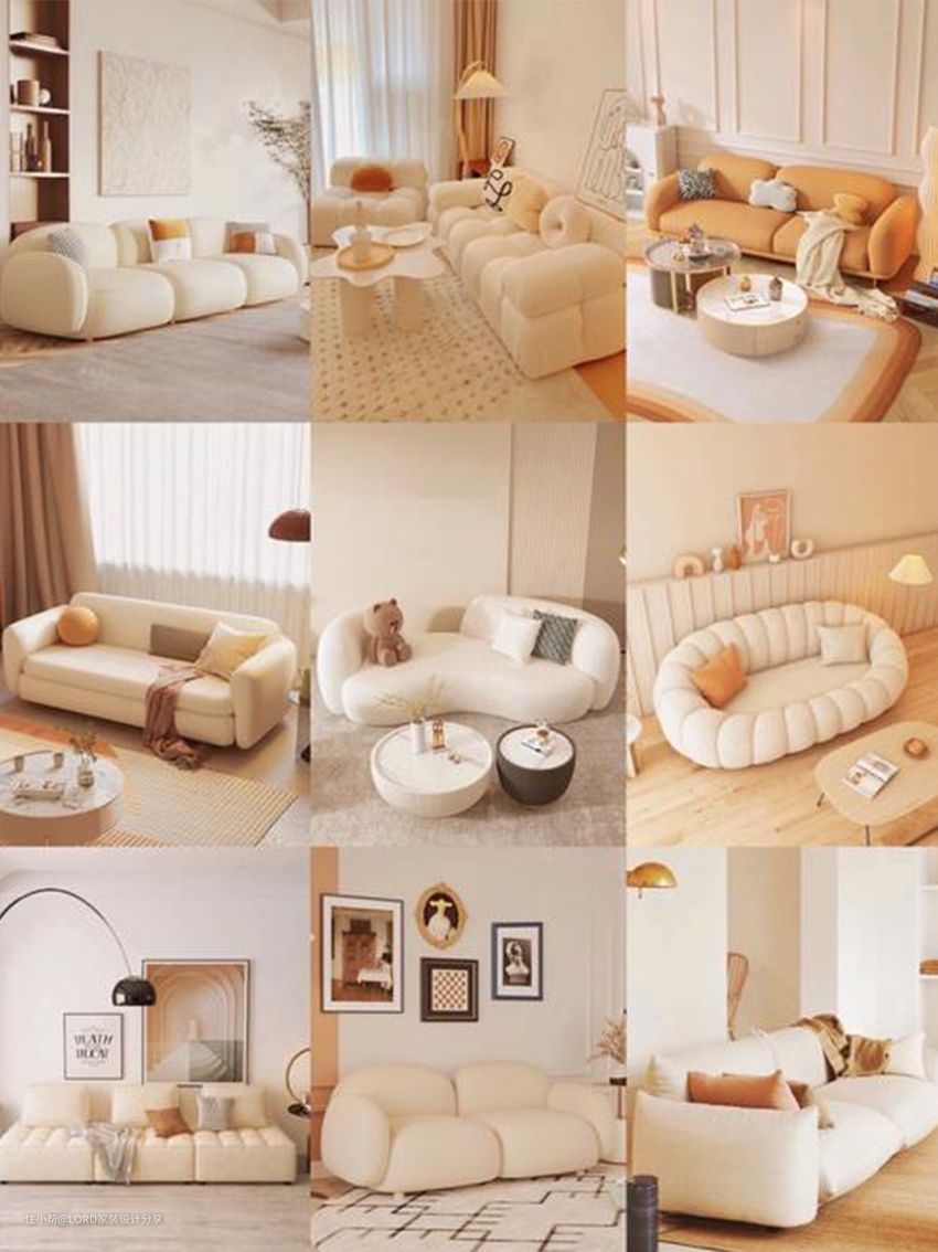 对于沙发建议选择布置材质,表面有编织感或者颗粒感的沙发,能进一步丰富空间的层次感!