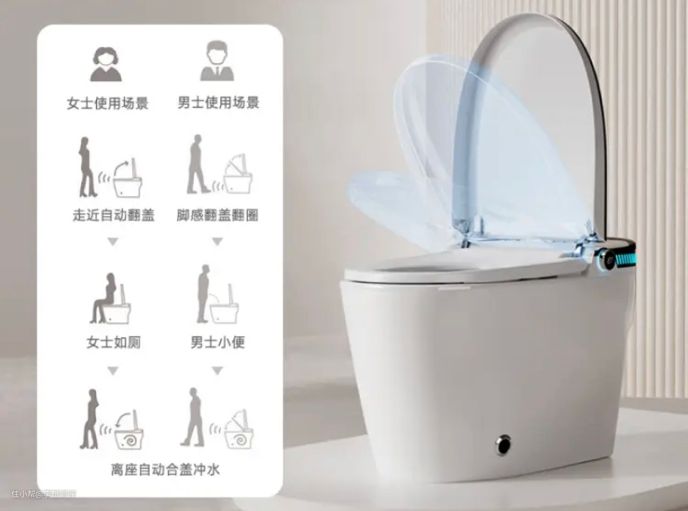 当使用者进入感应区域后,智能马桶会自动开启马桶盖,离开感应区域后则自动关闭,不需要人为手动对马桶盖进行闭合,更加方便卫生。这时候需要考虑的问题是,卫生间的区域范围是否足够智能马桶实现感应区域,否则卫生间空间过小,每次经过都会让马桶盖自动开启。