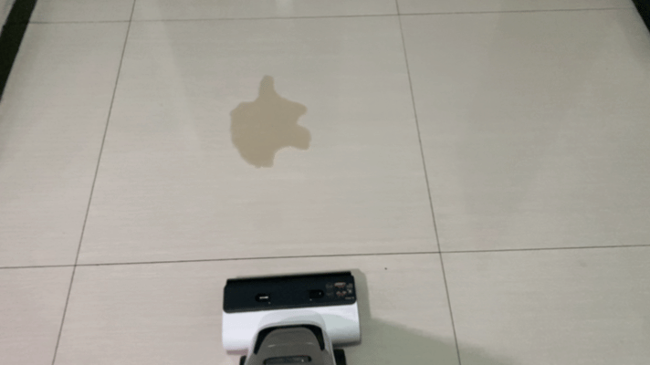 如果地面上有水渍也不用担心,小米洗地机可以开启吸水模式,很快就能把地面的水渍吸干净。它的污水箱是700ml的容量,一次性可以吸650ml左右的水,不用反复清洗污水箱。
