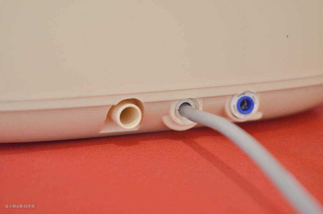 洗衣机的安装非常简单,电源线的旁边分别有两个孔,对应接入两根水管。左边是排水管右边是进水管,将管子怼进去就可以。注意一定要怼到位,不然会漏水。排水管的另一端接地漏,而进水管另一端接自来水龙头。、