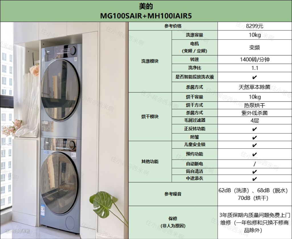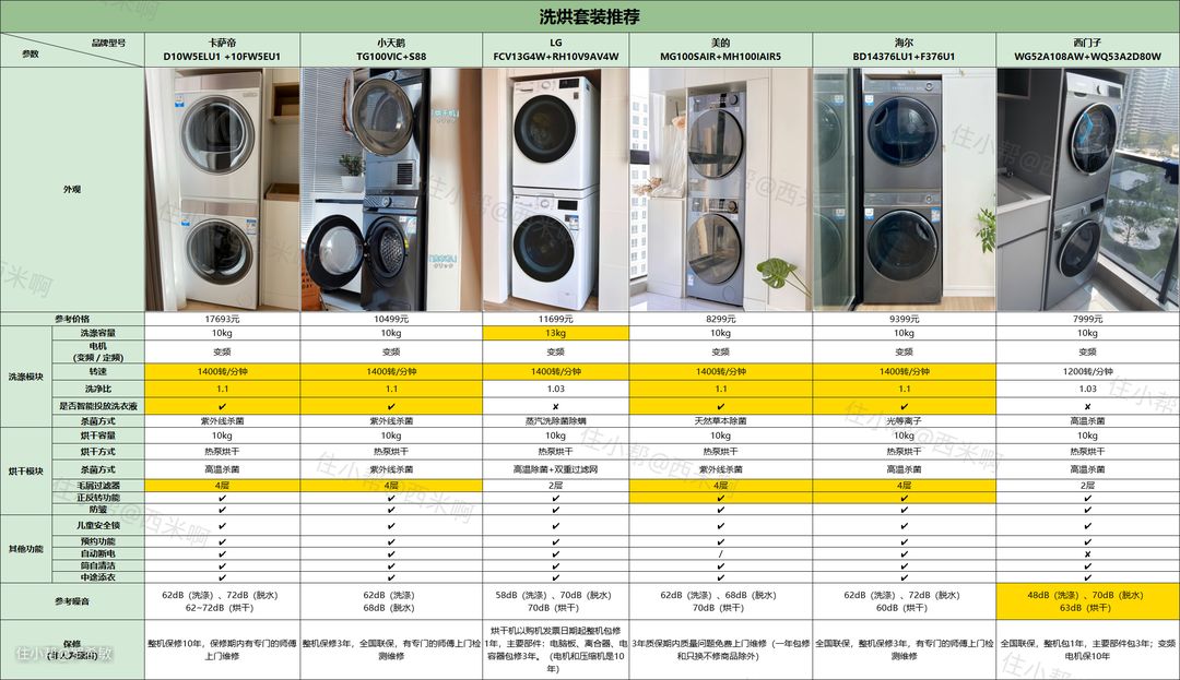 西米也是花了很多时间,做了很多功课,现在把我做的功课也分享给大家,为了方便大家对比,我把几款热门洗烘套装的数据整理成表格形式,更一目了然,大家可以根据自身需求参考。