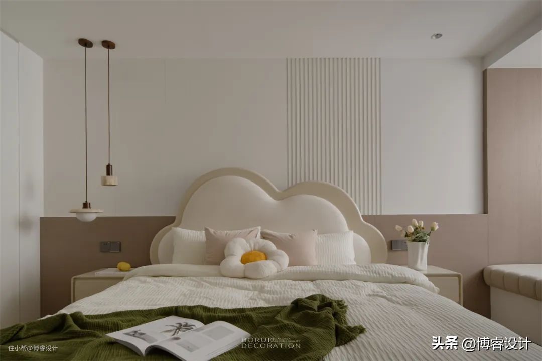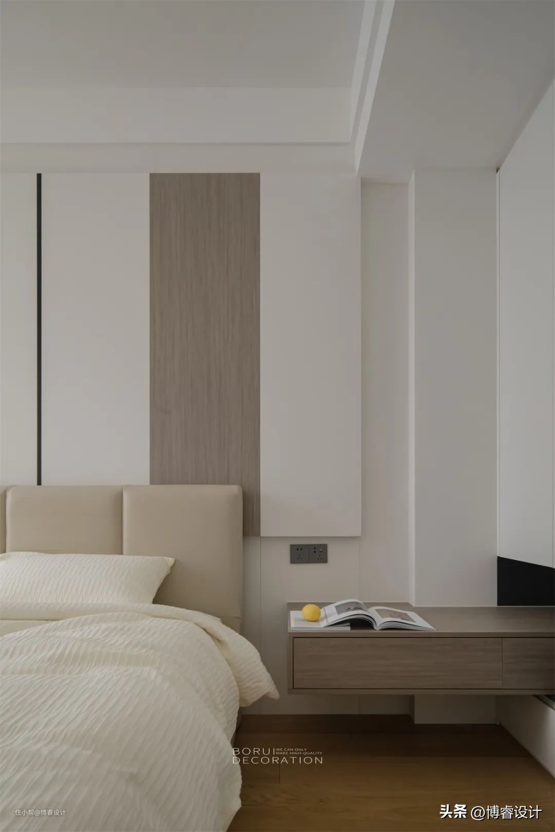 主卧素雅的色调+柔软的床品。令每一寸空间都弥漫着舒缓放松的氛围。预留床头梳妆台,丰富主卧的功能性。保留飘窗,作为闲暇时休憩的小角落,铺上飘窗软垫,感受着片刻的治愈时光,