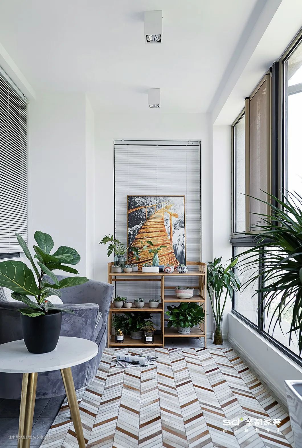 喜欢喝茶的朋友可以将阳台改成小茶室,随意摆上一张茶桌和懒人沙发就能搞定。