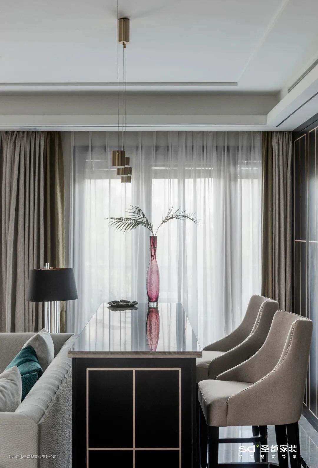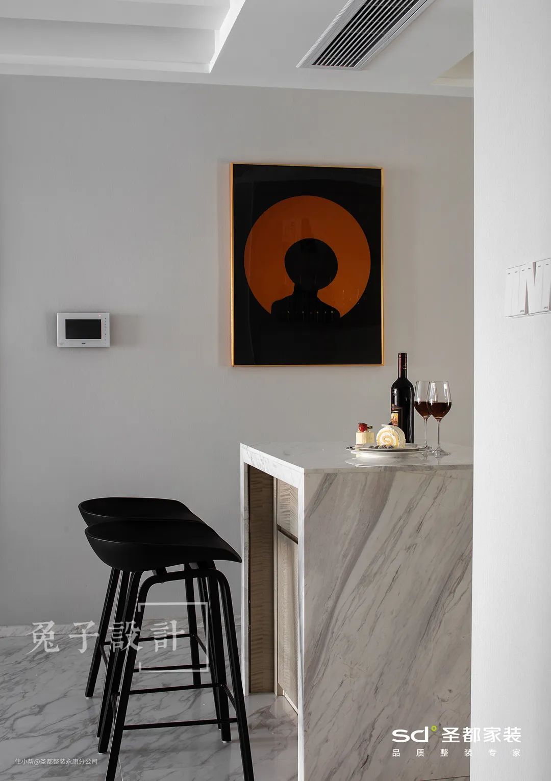 3.吧台休闲区,小小一方吧台,占地才1㎡,却能赋予生活100%的心动和情调。
