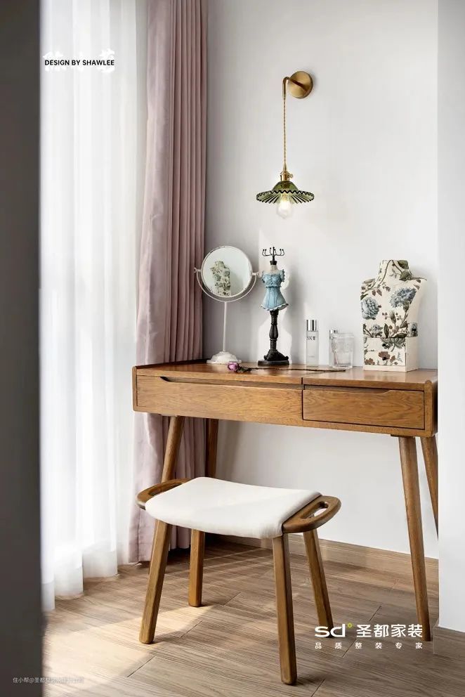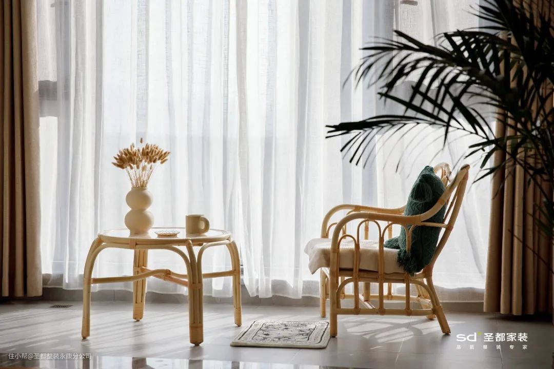 5.卧室休闲区,卧室空间足够大的话,可以划出一部分区域用作休闲区。在《鼠尾草与海盐》的案例里,主卧安置了屋主心爱的手作区,让屋主有空时可以做喜欢的手工。
