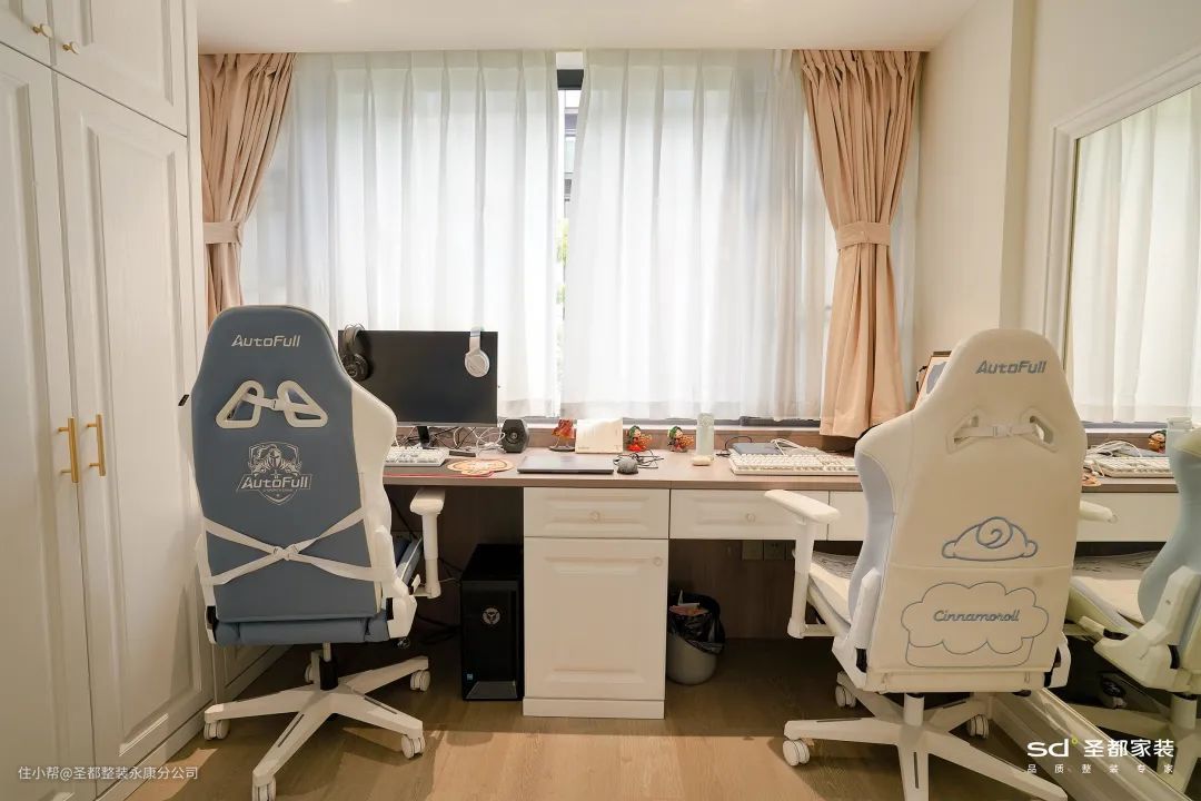 如果喜欢玩游戏,可以考虑舍弃传统书房。比如在《怦然心动》的案例里,特意设计了电竞房,方便屋主随时开黑。