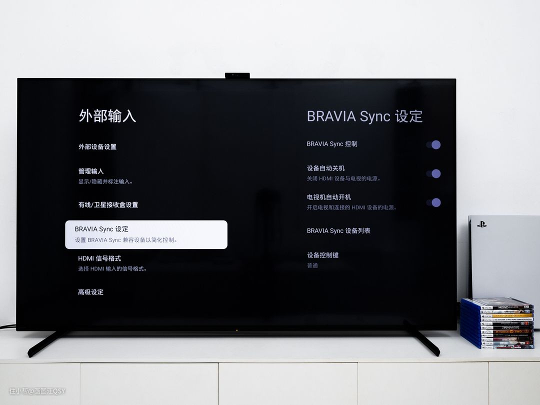 目前市售电视里面,索尼电视的CEC兼容性是标杆级的。一方面是因为索尼有主导CEC标准,另一方面是索尼产品线丰富,涵盖电视、次世代游戏机、音箱、蓝光播放器等等,因此各个CEC设备之间的联动很协调,切换也很顺滑。