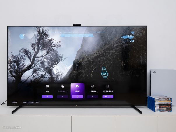 游戏增强器功能是伴随索尼新一代L系列电视推出的功能(去年的K系列通过固件升级也可获得游戏增强器的部分功能),可以直观地看到分辨率是多少、刷新率是多少,还有VRR有没有开启等等。不仅仅自家PS5可以使用,其他游戏主机,例如Xbox、Switch等亦可使用。功能上除了具备VRR设定,还支持调整运动模糊减少、黑平衡和开关十字瞄准线。运动模糊减少是通过插帧来改善画面的流畅度,如果是PC、XSX等可以实现4K 120Hz输出的游戏主机,不必开启。